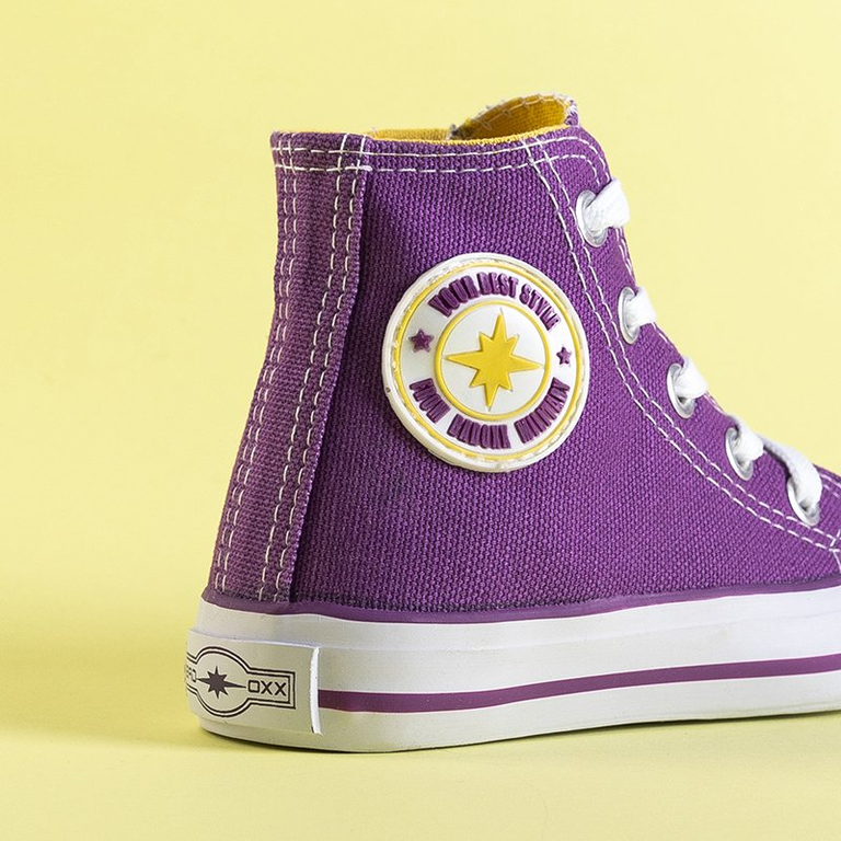 Fialové detské vysoké tenisky s odznakom Alvari - Obuv