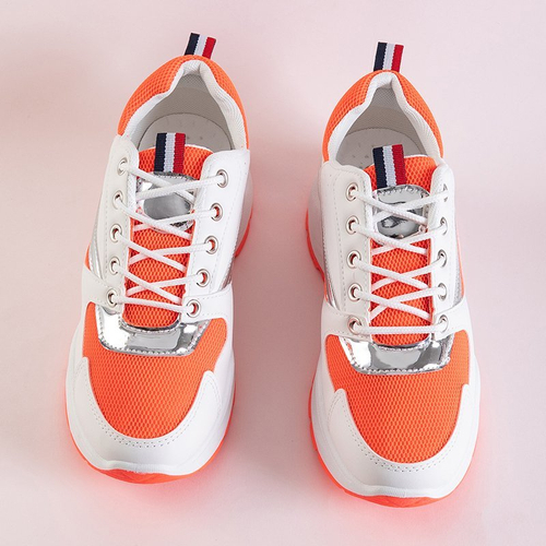 • Športová dámska obuv s hrubou podrážkou, vyrobená z kombinácie látky a ekokože. Šnurovací zvršok - s farebnými a holografickými vložkami, látková stielka, gumená podrážka. Poznámka: výrobok má na materiáli nečistoty.