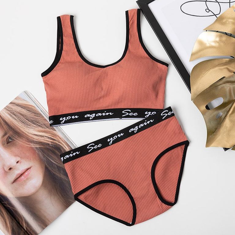 - Dámska súprava spodného prádla v športovom štýle, vyrobená z polyamidu. Podprsenka so širokými, nenastaviteľnými ramienkami, polstrovaná, bez drôtov. Slipy so širokým elastickým pásom. Model je zdobený nápismi. POZNÁMKA: Presnosť merania (+/-) 1 cm.