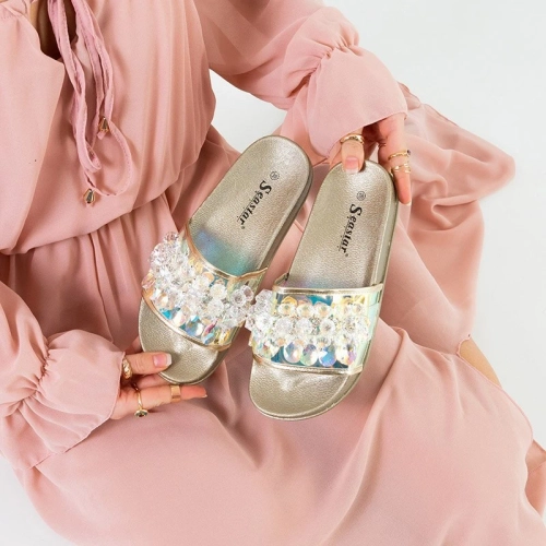 OUTLET Zlaté dámske sandále s kamienkami Halpasi - Obuv