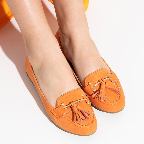 Žlté dámske mokasíny s strapcami v oranžovej farbe - topánky