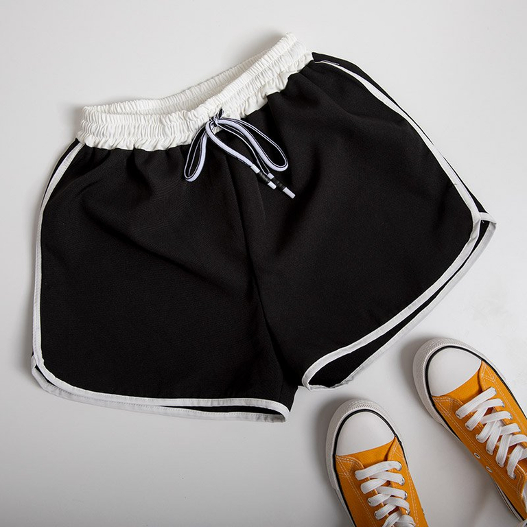 - Štýlové dámske šortky vyrobené z ľahkej polyesterovej tkaniny. Model má zaviazané šnúrky a pružný pás. Perfektné na vytvorenie letných ležérnych outfitov! POZNÁMKA: Presnosť merania (+/-) 1 cm.