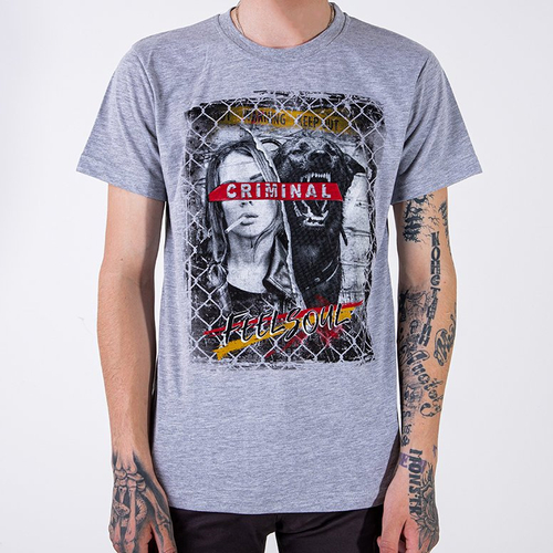 Pánske bavlnené tričko šedej farby s potlačou - Oblečenie