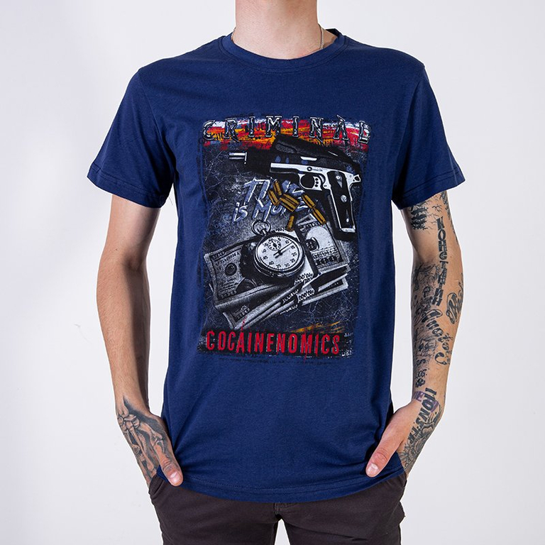 Pánske tmavomodré bavlnené tričko - Oblečenie