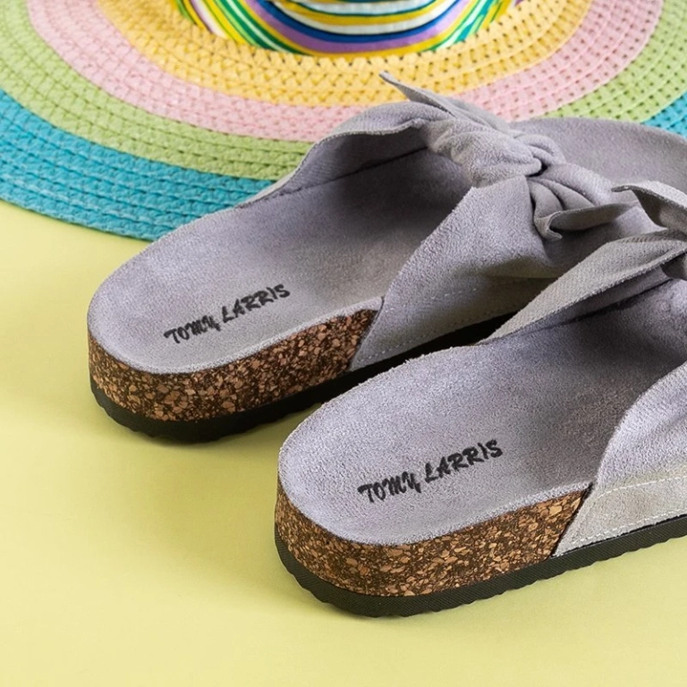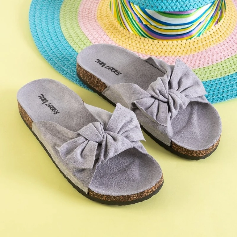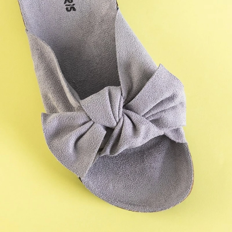 OUTLET Svetlošedé dámske papuče s mašličkou Alanza - Topánky