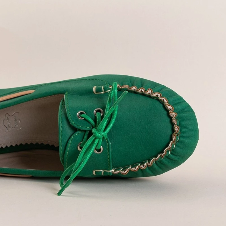 OUTLET Zelené dámske mokasíny s viazaním Norami - Topánky