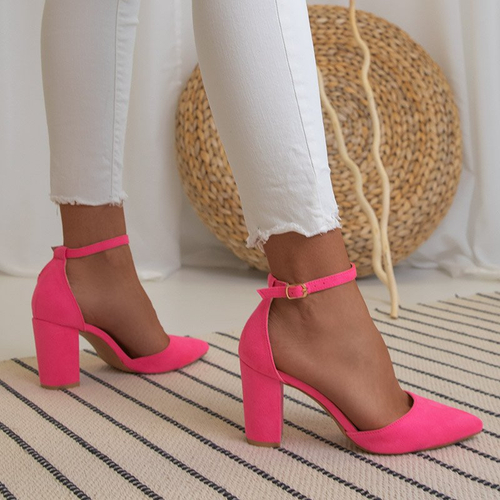 • Krásne dámske sandále na stabilnom stĺpiku - kombinácia klasiky, elegancie a pohodlia! Sú vyrobené z mäkkého eko semišu a stielka je z ekologickej kože. Zúžený palec opticky zoštíhli nohy. Popruh zapnutý prackou okolo členku.