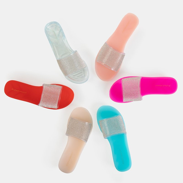 - Dámske papuče s plochým podpätkom, celé vyrobené z gumového materiálu. Prúžok zdobený malými kubickými zirkónmi. Pohodlné dámske papuče na leto!
