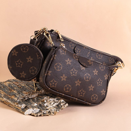 Vzorovaná trojdielna hnedá dámska kabelka - Kabelky