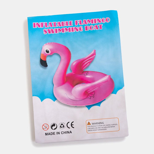 - Detské nafukovacie koleso v tvare plameniaka, vyrobené z PVC. Výrobok má otvory pre nohy, ktoré zabraňujú vypadnutiu dieťaťa, a ďalšie krídla, ktoré ho drží, aby sa udržala stabilizácia. Rozmery: dĺžka - 66 cm, šírka - 52 cm.