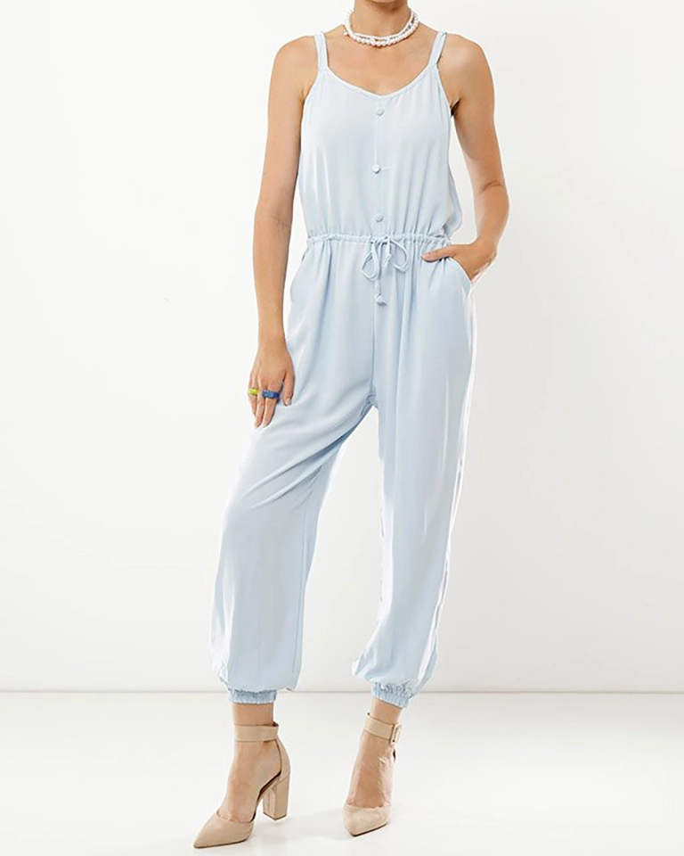 Dámska modrá bavlnená kombinéza s gombíkmi - oblečenie