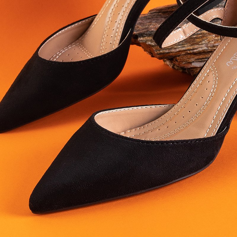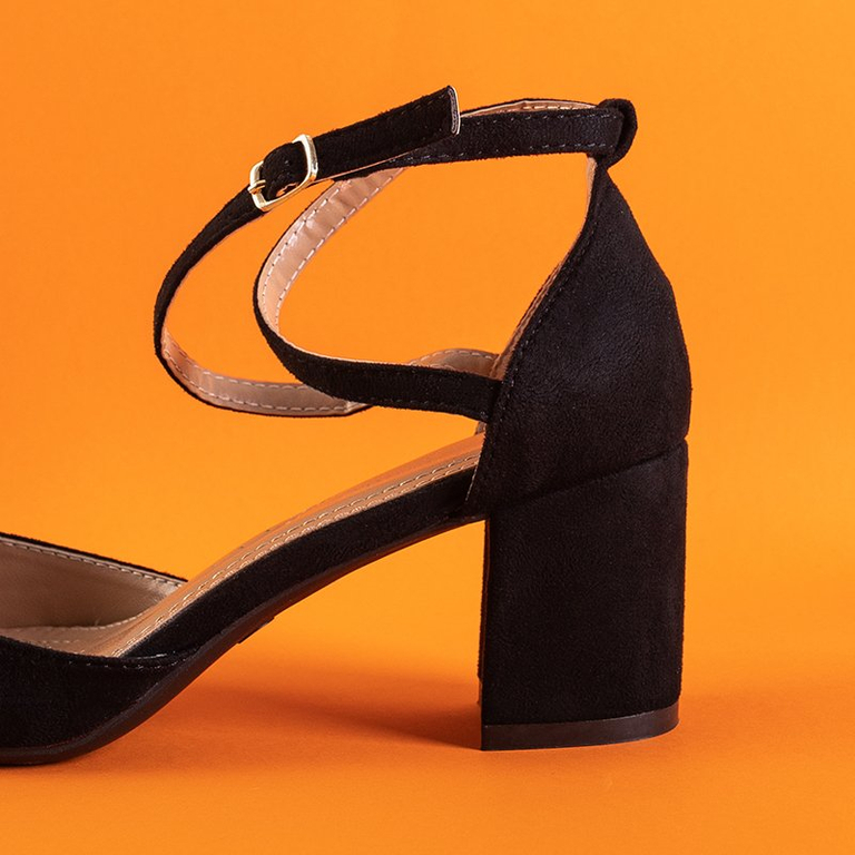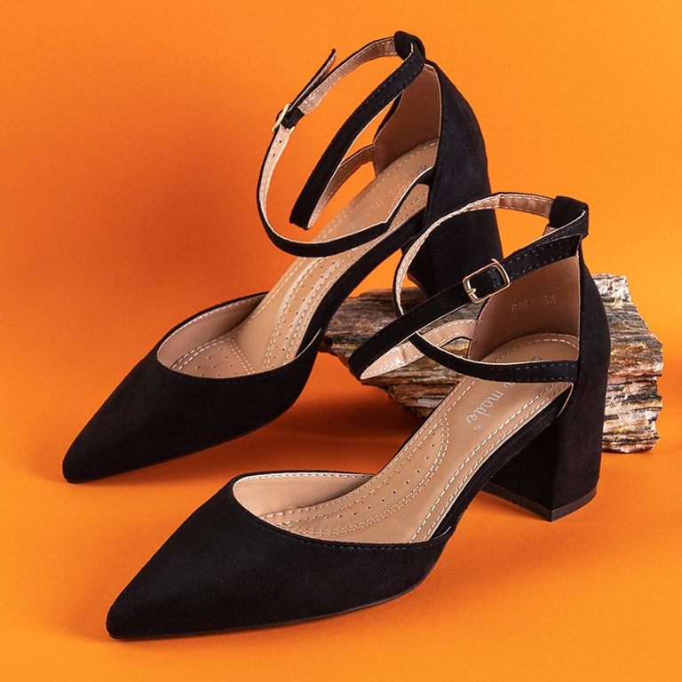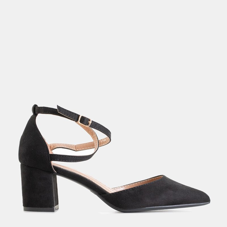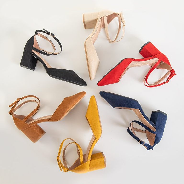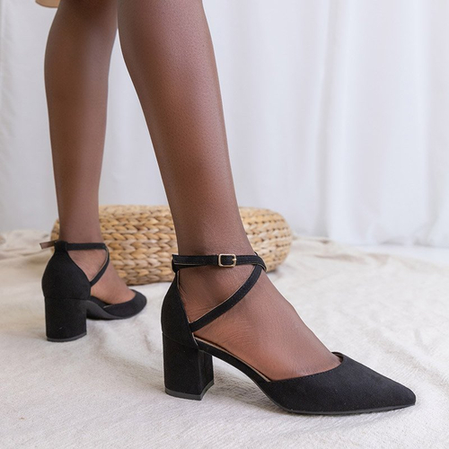 - Nádherné dámske lodičky na stabilnom stĺpiku - kombinácia klasiky, elegancie a pohodlia! Sú vyrobené z mäkkého eko semišu a stielka je z ekologickej kože. Zúžený palec opticky zoštíhľuje nohy. Popruh zapnutý prackou okolo členku.