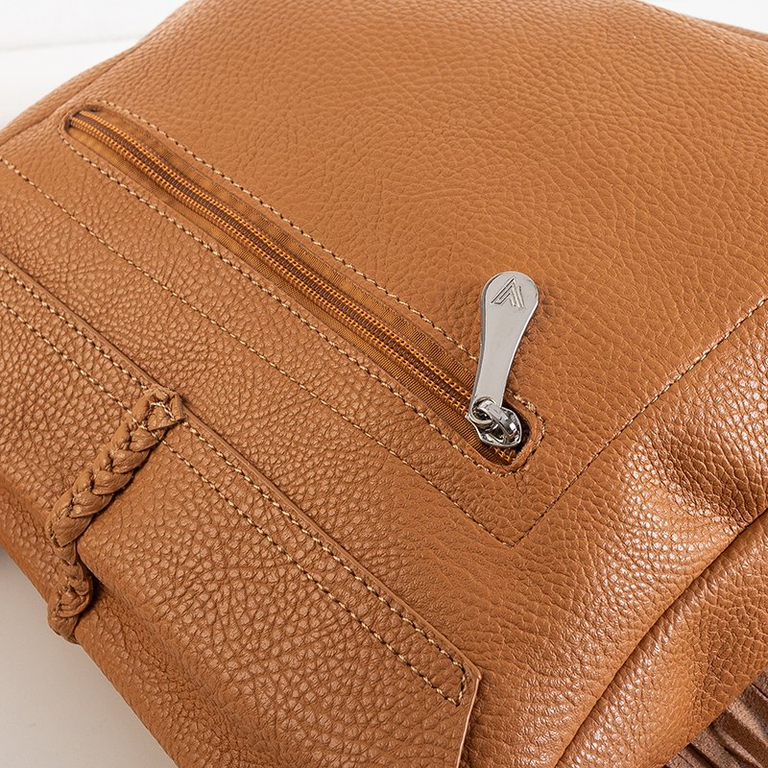 • Dámska kabelka vyrobená z ekokože. Model má vrecko na zips a priehradku na telefón. Kabelka je zapínaná na zips, navyše okolo okolo módne strapce a strieborná spona. Tento zaujímavý produkt spestrí akýkoľvek styling!
