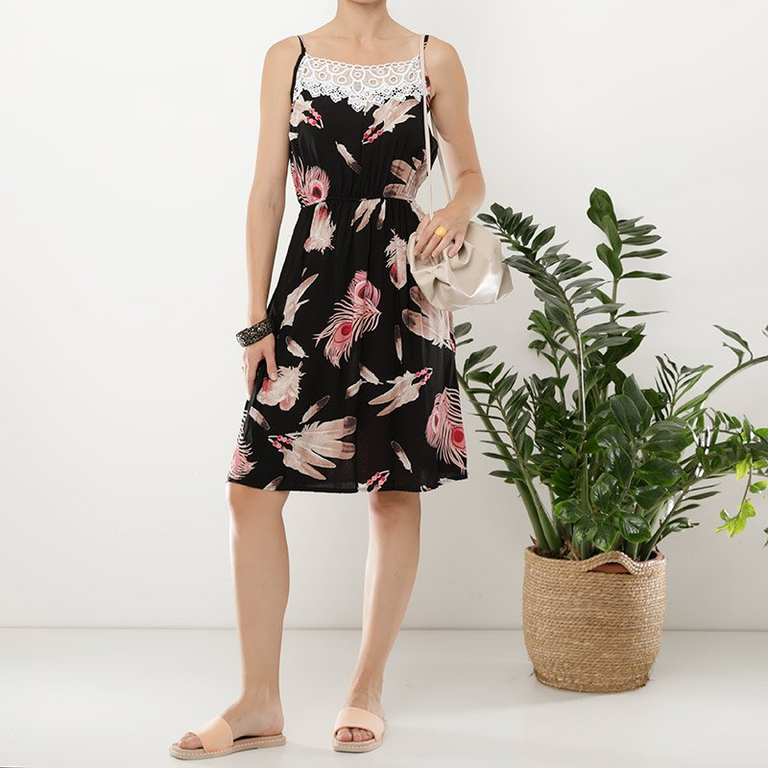 Čierne dámske krátke šaty červenej rastlinnej potlače - Oblečenie