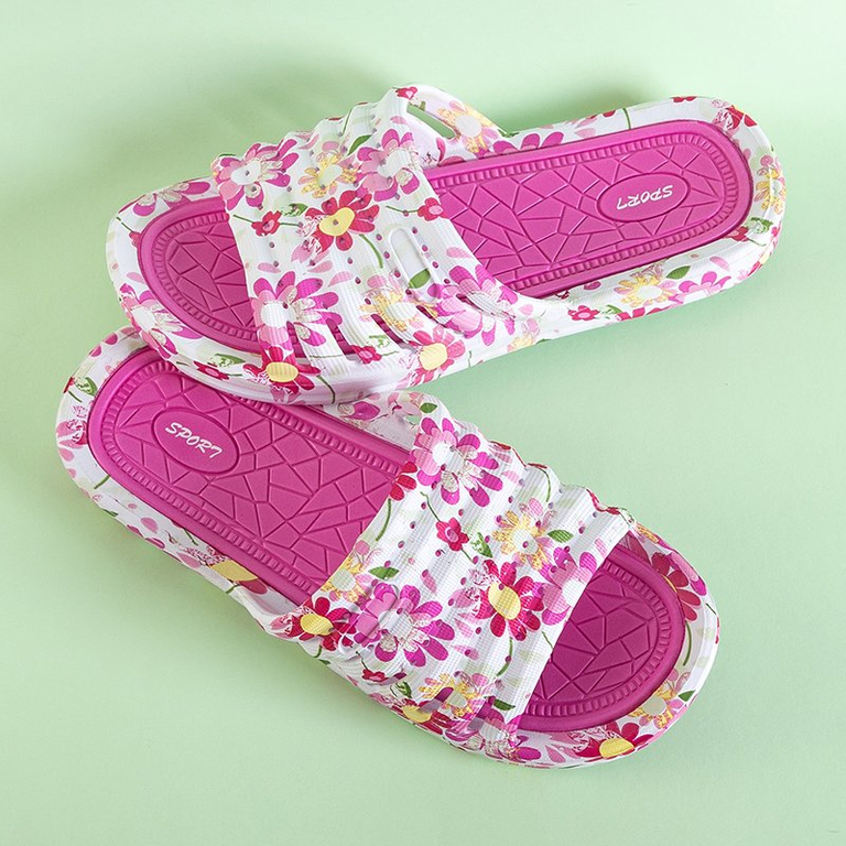 Ružové gumené papuče s kvetinami Leda - Obuv