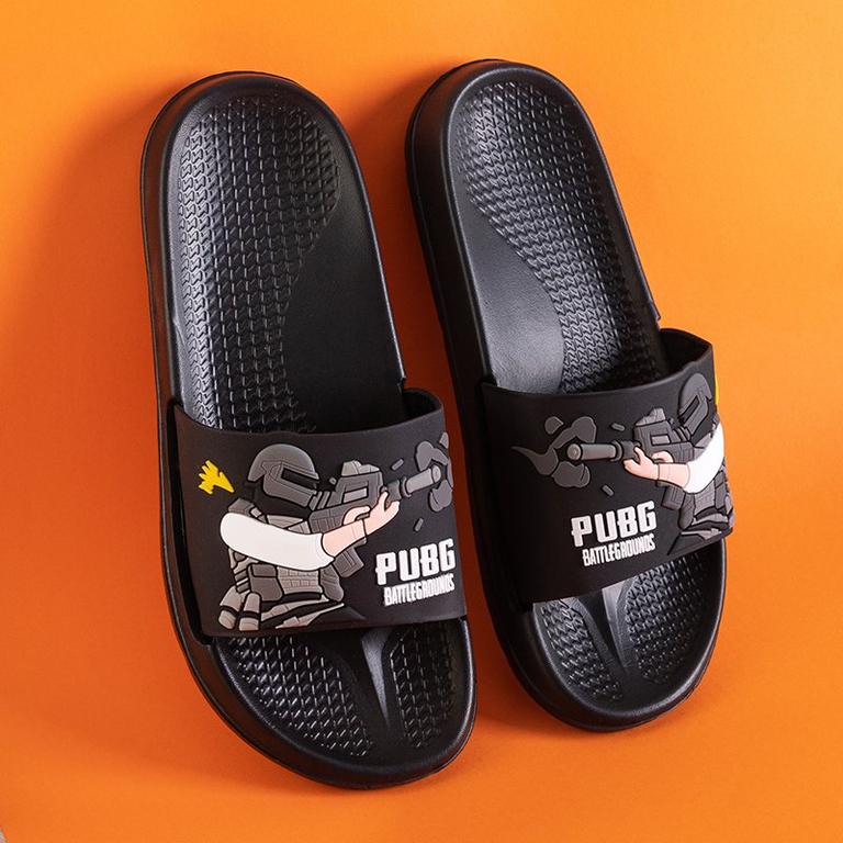 - Dámske šľapky gumy so širokým opaskom. Dodatočnou dekoráciou je ostreľovač a nápis na opasku. Veľmi pohodlné, ideálne na pláž alebo ako papuče.