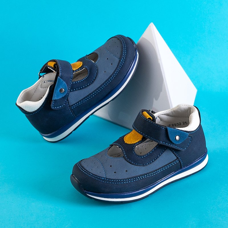 Tmavomodré chlapčenské topánky so žltými vložkami Bartnie - Obuv