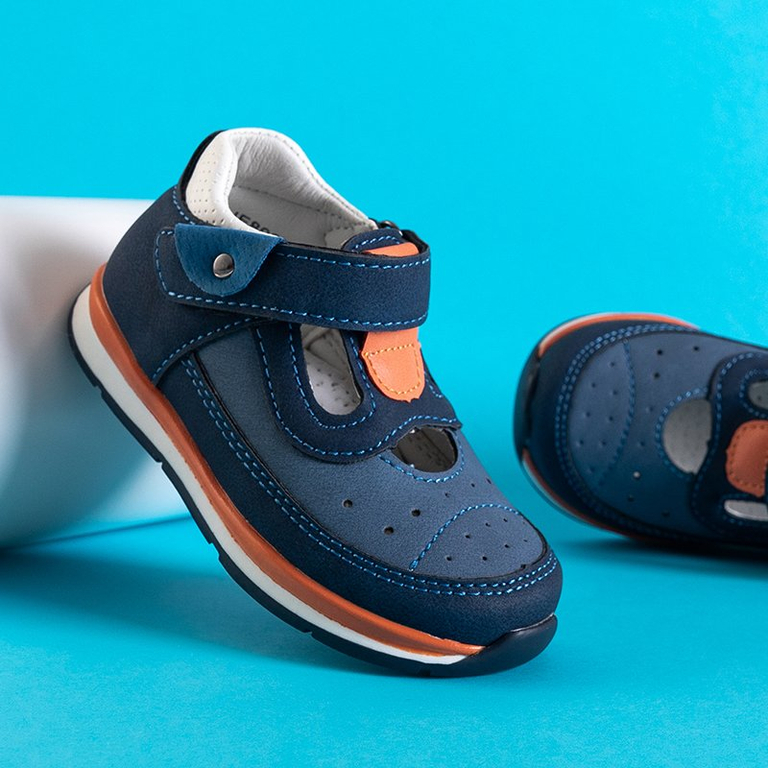 Tmavomodré chlapčenské topánky s oranžovými vložkami Bartnie - Obuv
