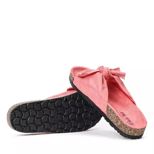- Neskutočne pohodlná dámska obuv s ružovou mašličkou. Zvršok a stielka sú vyrobené z mäkkého ekologického semišu. Podrážka je vyrobená z kombinácie gumy a korku. Poznámka: výrobok má na materiáli stopy lepidla.