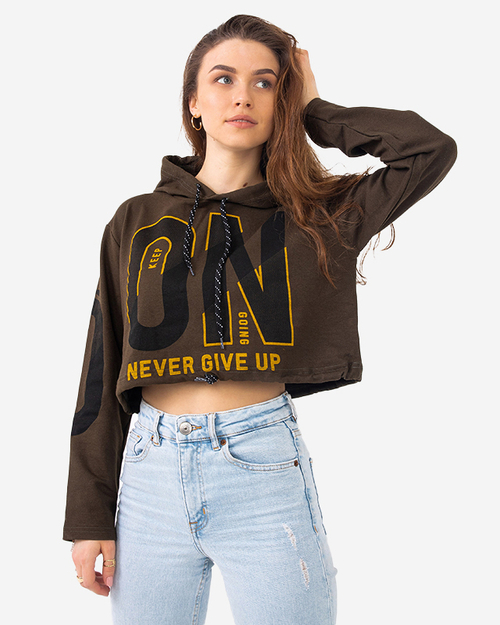 Tmavozelený dámsky crop top s kapucňou - Oblečenie
