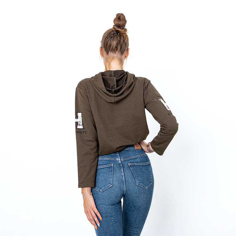 Tmavozelená dámska mikina s kapucňou s nápismi - Oblečenie