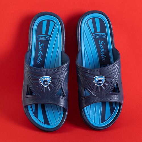 - Pánske bazénové papuče z gumového materiálu. Remienok je ukončený drobnými rezmi. Pevne vyrobené a veľmi pohodlné vďaka mäkkej podrážke.