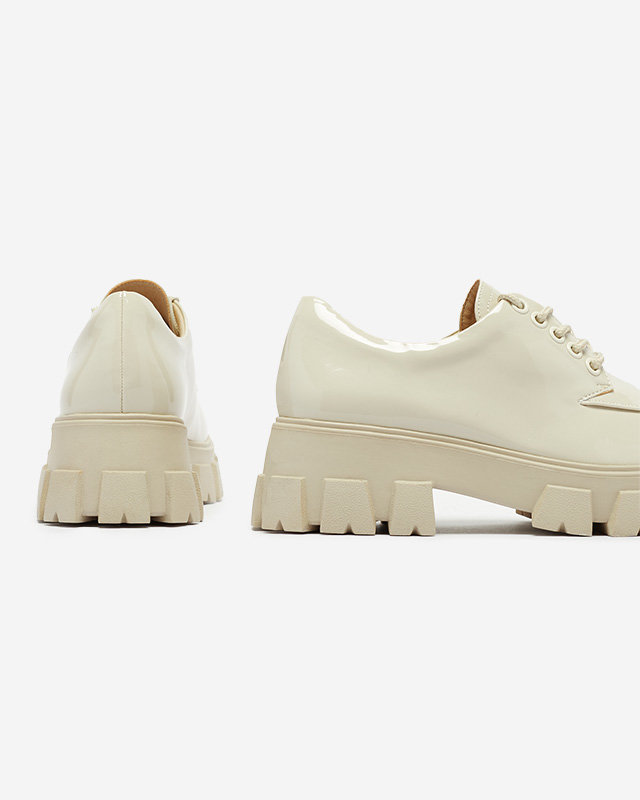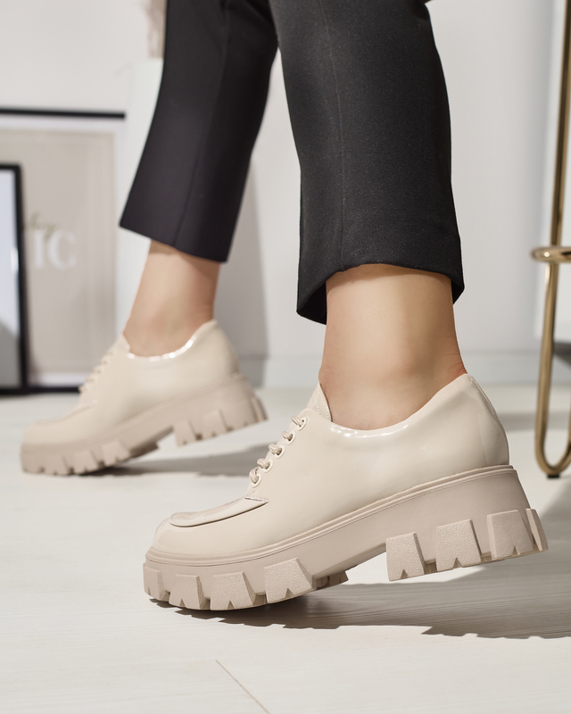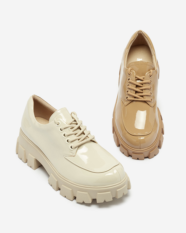 Dámske svetlo béžové lakované šnurovacie topánky Ginara - Obuv