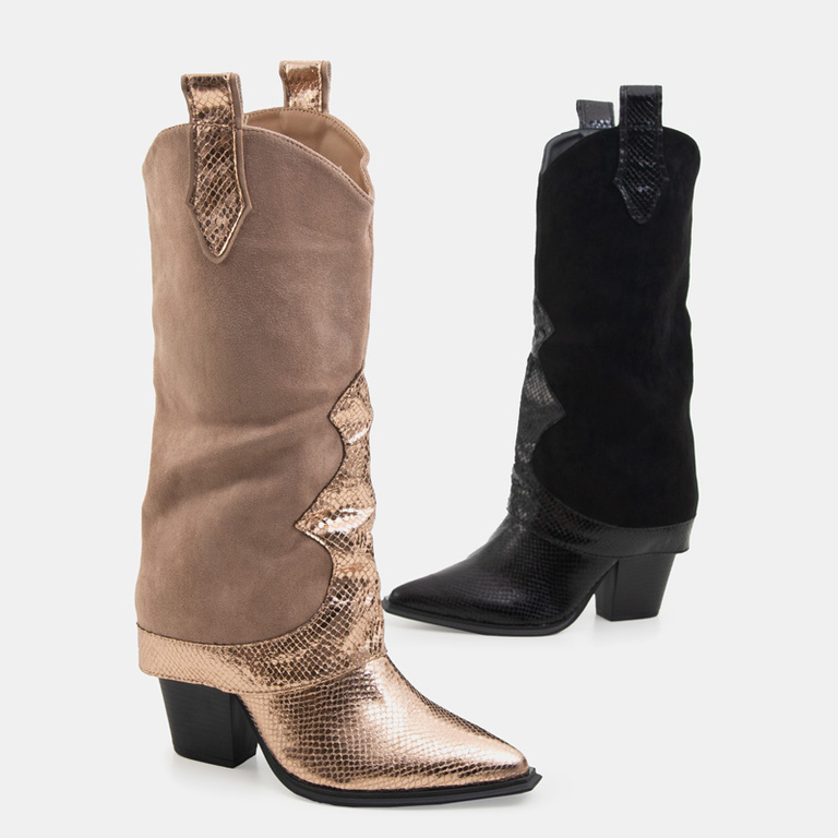 Čierne čižmy so zdobeným zvrškom a'la hadej kože Wica- Obuv