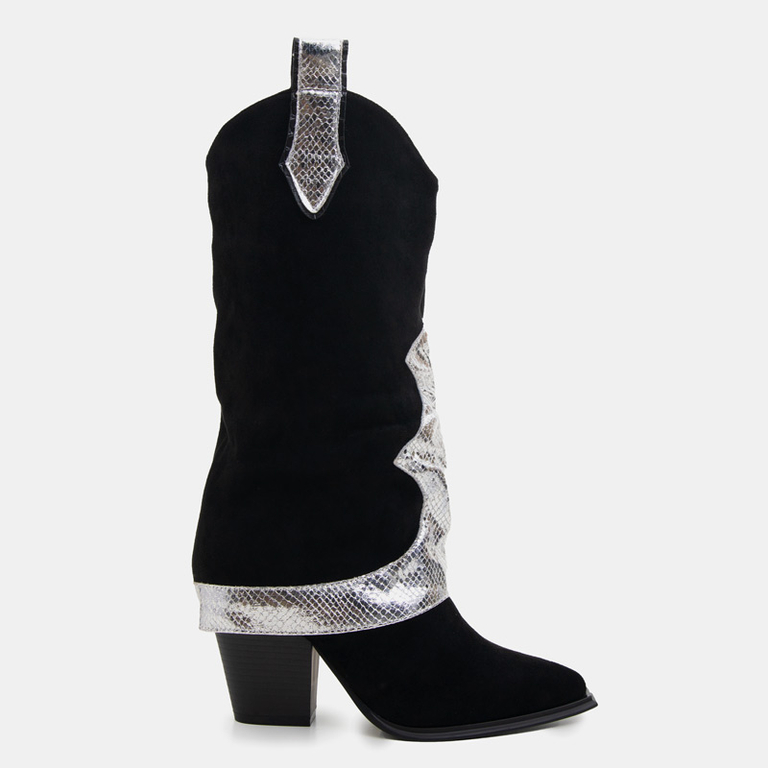 • Štýlové čižmy na vysokom podpätku s ozdobným zvinutým zvrškom. Obuv vyrobená z ekologického semišu príjemného na dotyk. Stielka je vyrobená z textílie. Pevne vyrobené a neuveriteľne pohodlné.