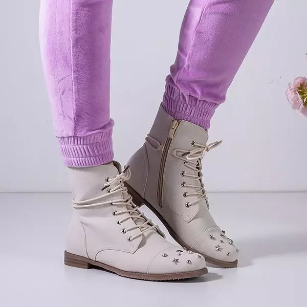 OUTLET Béžové dámske čižmy s ozdobami Matildat - Obuv