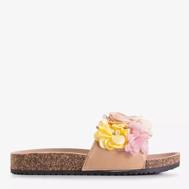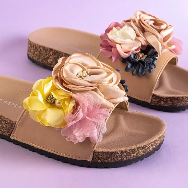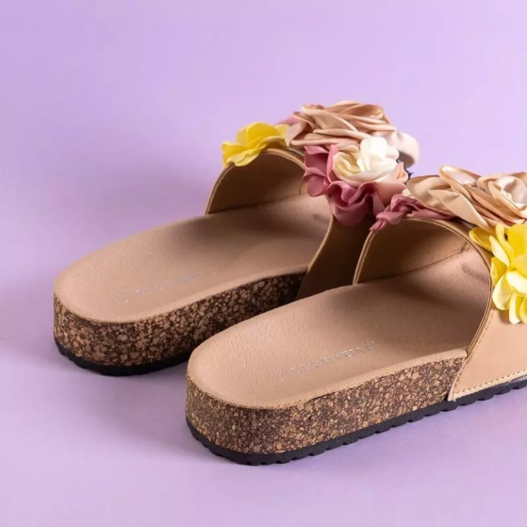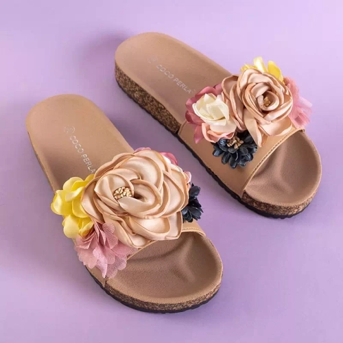 OUTLET Béžové dámske šľapky s kvetmi Florencia - Obuv