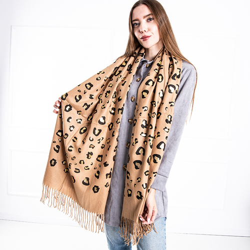 - Krásna dámska teplá šatka, ideálna na jeseň a zimu. Po bokoch ozdobené zlatými vsadkami a strapcami.