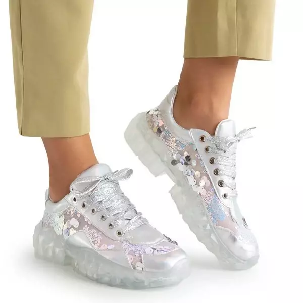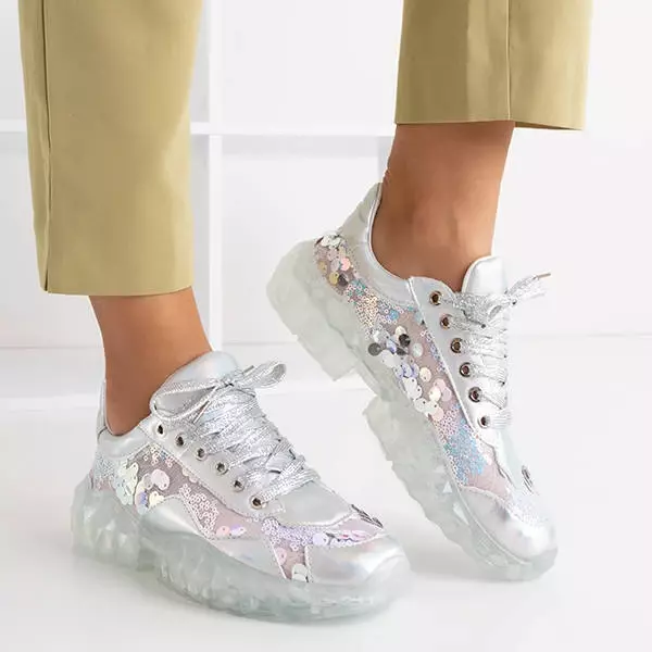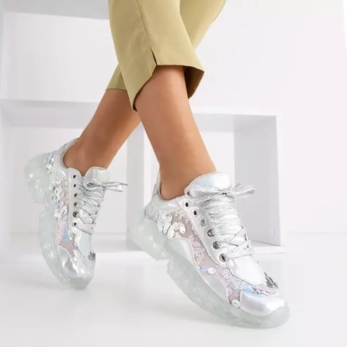 OUTLET Strieborná dámska športová obuv s flitrami Polja - Obuv