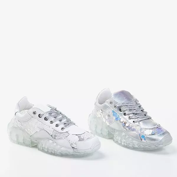 - Štýlová dámska športová obuv vyrobená z kombinácie priehľadnej sieťoviny a ekologickej kože. Model má zvršok zdobený flitrami a vsadku z ekokože. Poznámka: výrobok má na materiáli zafarbenie.