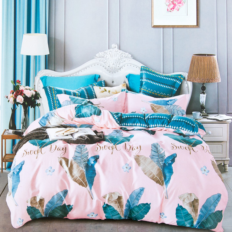 Ružová listová bavlnená posteľná bielizeň 160x200 súprava 4 diely - Posteľná bielizeň