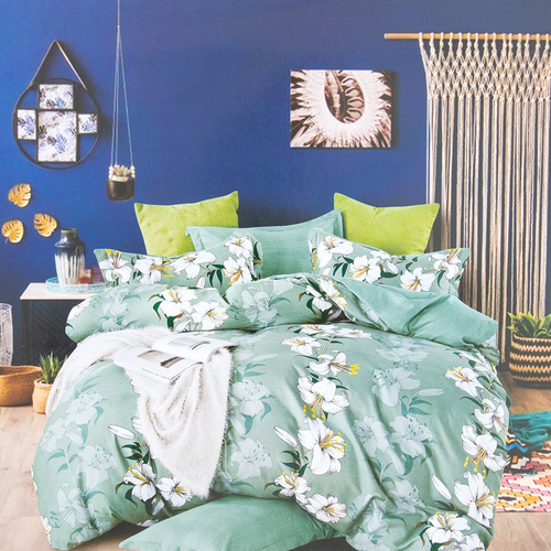 Zelené bavlnené obliečky 200x220 s kvetmi sada 4 -KUSOV - Posteľná bielizeň