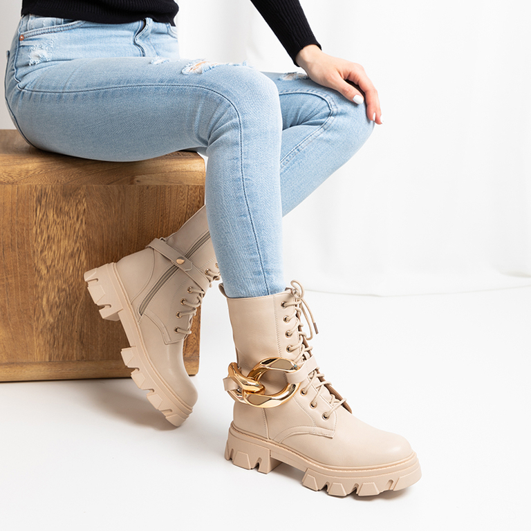 - Dámske tašky z ekologickej kože so zapínaním na zips a navyše so šnúrkami. Zateplený model s kožušinovou podšívkou vo vnútri. K tomu plastová, zlatá spona na opasku. Pohodlné topánky, skvelé na jesenné prechádzky!