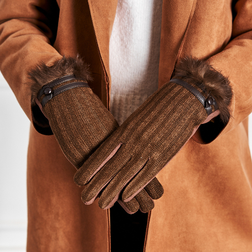 Tmavohnedé dámske rukavice s kožušinou - Príslušenstvo