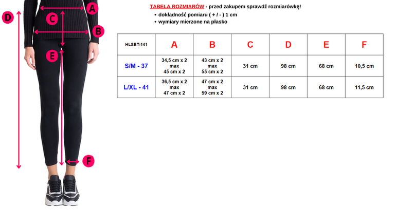 - Dámska športová súprava s teplákami a mikinou. Model je vyrobený z príjemnej látky na dotyk. Vrchná časť sady s potlačou vpredu, bez kapucne, spodná časť s elastickým pásom a spodnou časťou nohavíc a 2 vrecká. POZNÁMKA: Presnosť merania (+/-) 1 cm.