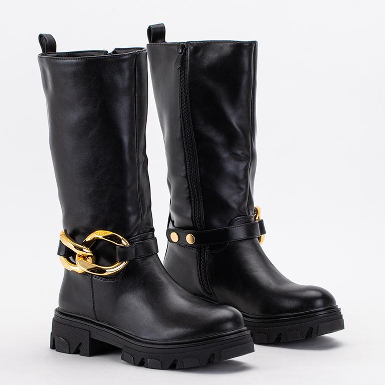 Čierne dámske čižmy s retiazkou Helari - Obuv