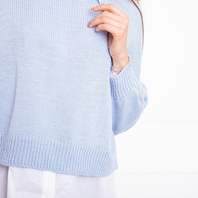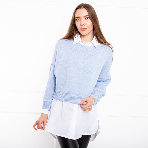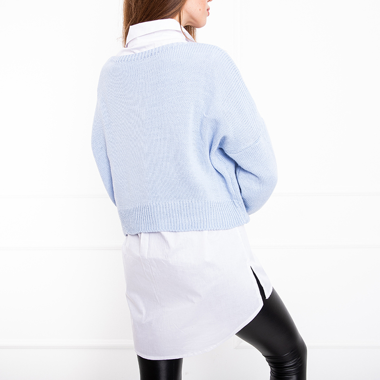 Dámsky modrý sveter s bielou košeľou - Oblečenie
