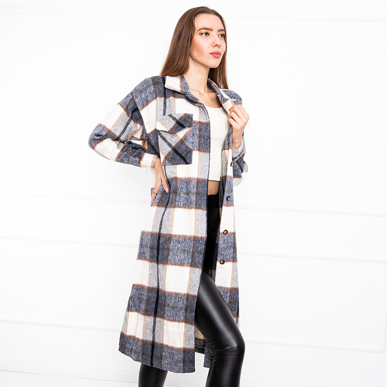 Dámska tmavomodrá károvaná dlhá košeľa - Oblečenie
