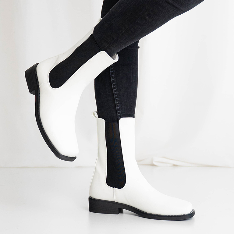 Dámske biele čižmy so štvorcovou špičkou Pyroqe - Obuv