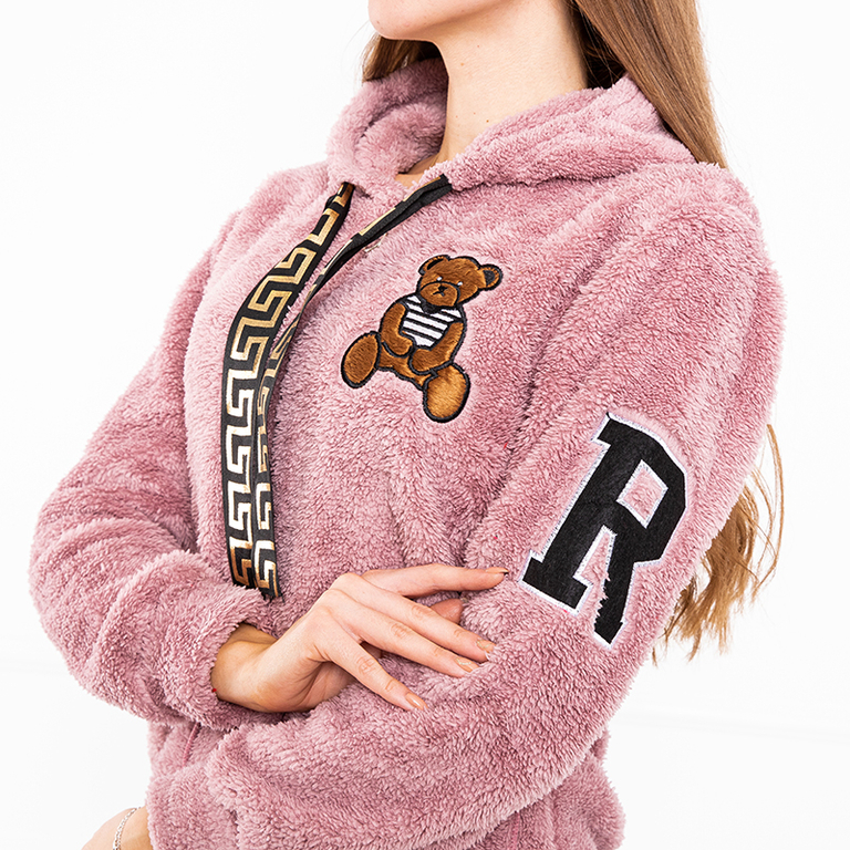 • Krásna dámska mäkká a teplá mikina s kapucňou. Model s 2 vreckami, predné a zadné nášivky s nášivkami s medvedíkmi. Perfektná mikina pre ženy, ktoré si cenia pohodlie! POZNÁMKA: Presnosť merania (+/-) 1 cm.