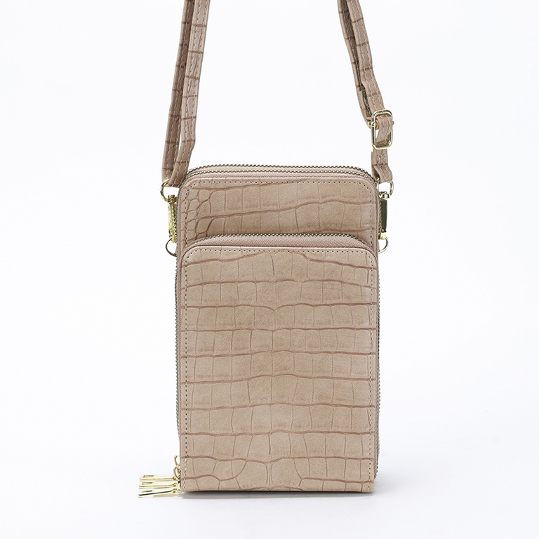 - Dámska mini taška cez rameno, vyrobená z ekologickej kože s razením a zapínaná na zips. Model má: - 3 priehradky na zips, - 8 vreciek na platobné karty alebo iné doklady, - dodatočne nastaviteľný, odnímateľný popruh.
