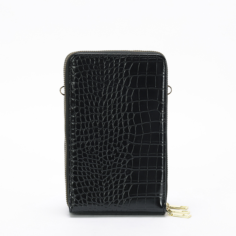 • Dámska mini taška cez rameno, vyrobená z ekologickej kože s razením a zapínaná na zips. Model má: - 3 priehradky na zips, - 8 vreciek na platobné karty alebo iné doklady, - dodatočne nastaviteľný, odnímateľný popruh.