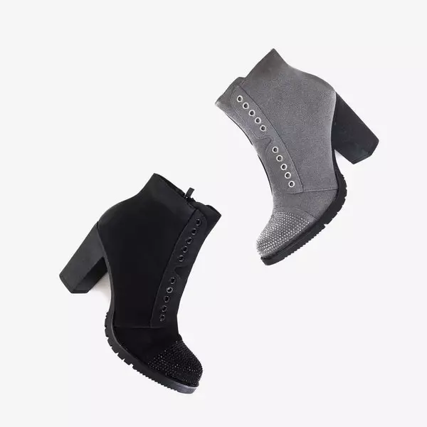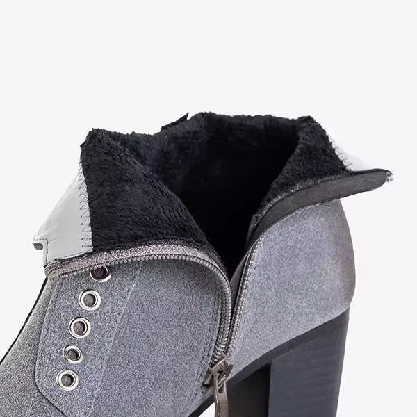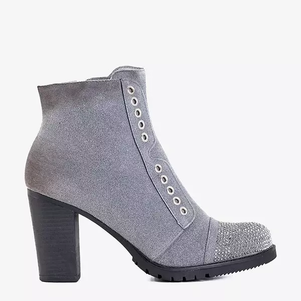 OUTLET Šedé dámske členkové čižmy s ozdobami Valor - Obuv