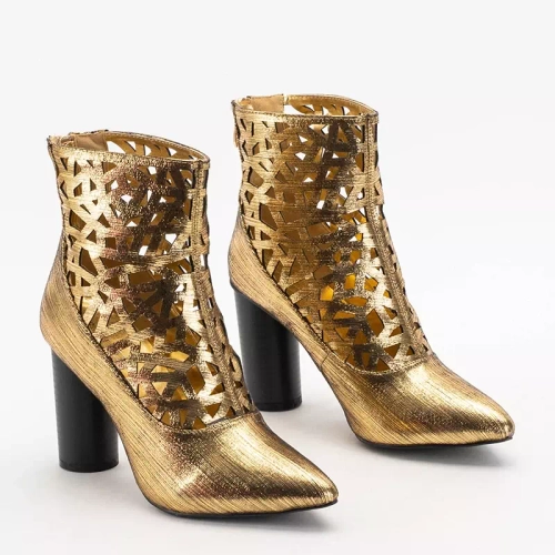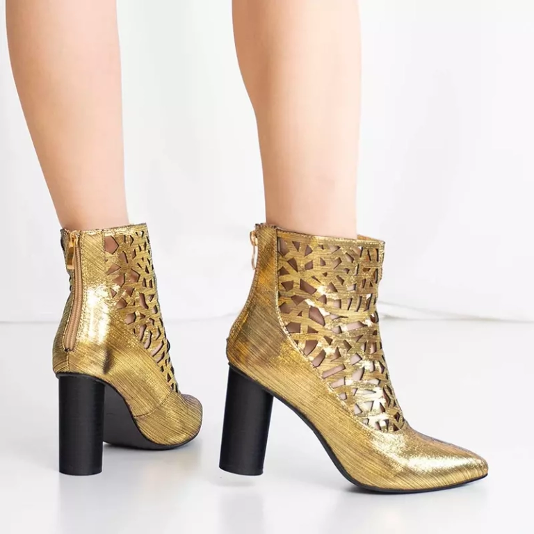 OUTLET Zlaté dámske čižmy s výrezmi na vyššom stĺpiku Olik - Obuv