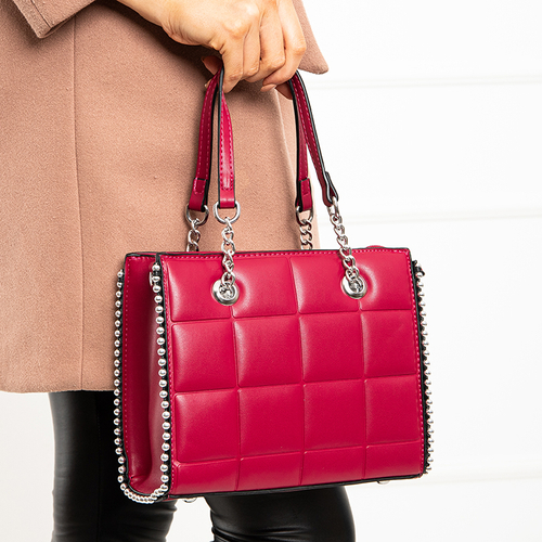 - Dámska kabelka z ekokože s prešívanou prednou časťou. Model má dve kratšie rúčky a dlhší pripevnený popruh. V strede tašky sú dve vrecká, z toho jedno na zips. Štyri nohy na dne.