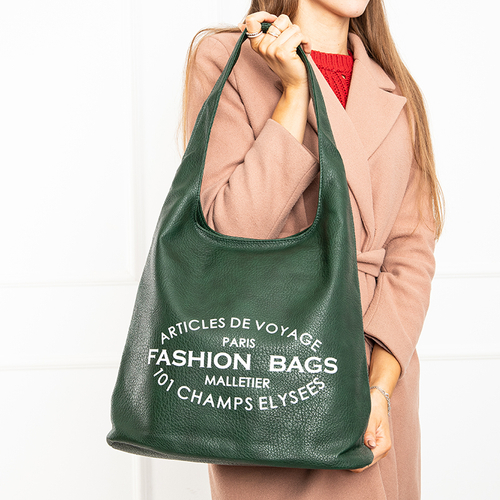 - Veľká dámska kabelka s nápismi, vyrobená z ekologickej kože a zapínaná na zips. Model má: - 1 priehradku vrátane 1 prepážky, - 1 vonkajšie vrecko na zips, - 4 vnútorné vrecká, z toho 2 na zips.